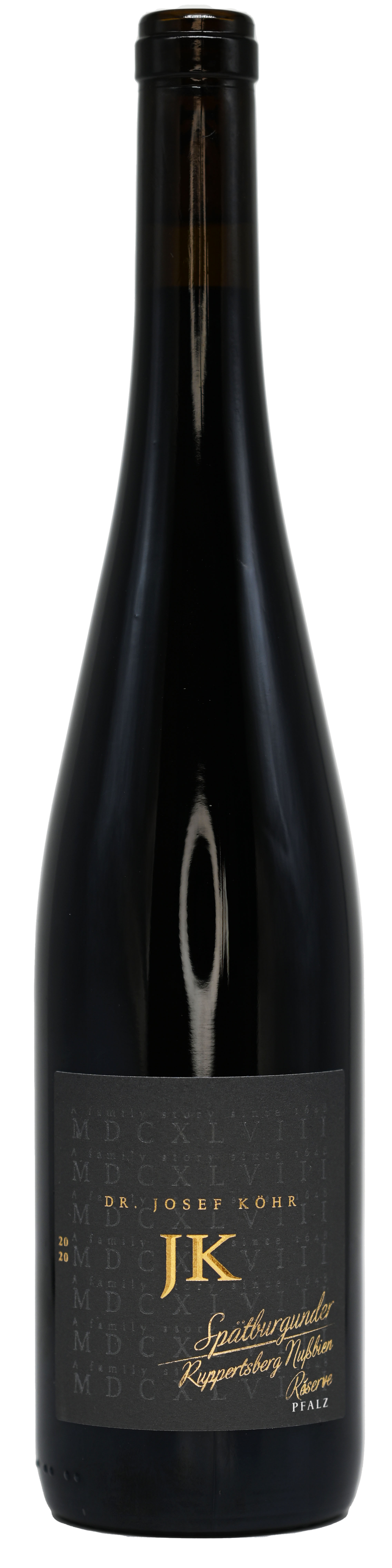 Ein Spätburgunder elegant, kraftvoll und langlebig! Gewachsen in unserem Stammwingert dem Ruppertsberger Nußbien, charakterisiert durch kalkhaltigem Buntsandstein und Verwitterungsboden. Vergoren über einen Monat auf der Maische. Der Ausbau erfolgte über mindestens 30 Monate in französischen Barriques unter regelmäßiger Bâtonnage. Im Glas präsentiert sich der Pinot noir leuchtend rubinrot. In der Aromatik vereint sich eine intensive Fruchtaromatik von Spätburgunder typischer Kirsche mit kraftvollen Tertiäraromen wie Tabak, Leder, Salz und Lakritz, die einen intensiven Eindruck im Mund hinterlassen. Zum Erhalt maximaler Aromatik behutsam unfiltriert abgefüllt. Der Verschluss mit hochwertigem Naturkork und zusätzlichem Wachssiegel versprechen langes Lagerpotential.