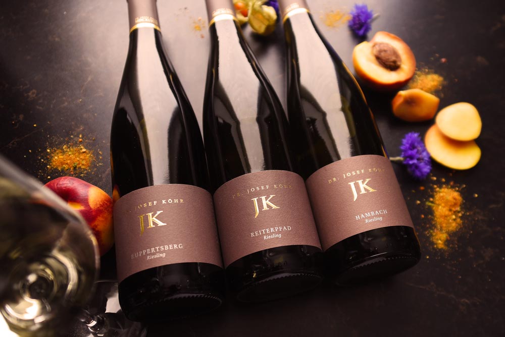 Der größte Teil unserer Weinbergsflächen ist mit der für die Mitelhaardt typischen Rebsorte Riesling bestockt. Riesling ist gekennzeichnet durch klassische Aprikosen- und Pfirsicharomen, die dem Wein gemeinsam mit einer erfrischenden Säurestruktur seinen Charakter verleihen. Egal, ob spritzig frisch oder greift opulent. Riesling ist eine der vielschichtigsten Rebsorten, die über den Reifeprozess hinweg ihre Facetten eindrucksvoll entfaltet. Unser Sortiment untergliedert sich in Orts- und Lagenweine. Ortsweine entstammen unseren Weinberge innerhalb einer Ortsgemarkung und bilden das typische Kleinklima entlang der Deutschen Weinstraße eindrucksvoll ab. Lagenweine stellen die engste geographische Eingrenzung dar. Trauben für Lagenweine entstammen einem einzigen Weinberg und bilden somit unverwechselbar das Terroir der Einzellage ab.